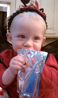 Probably my favorite picture of Chloe the whole night. She wouldn't hold still long enough to get a decent one until Aunt Joyce gave her a Capri Sun. She just sucked on the wrapper. It was our last stop for the night. She did such a good job. We made it to all of the family members that we wanted. This picture just shows truly how precious she is.... I love you Chloe!