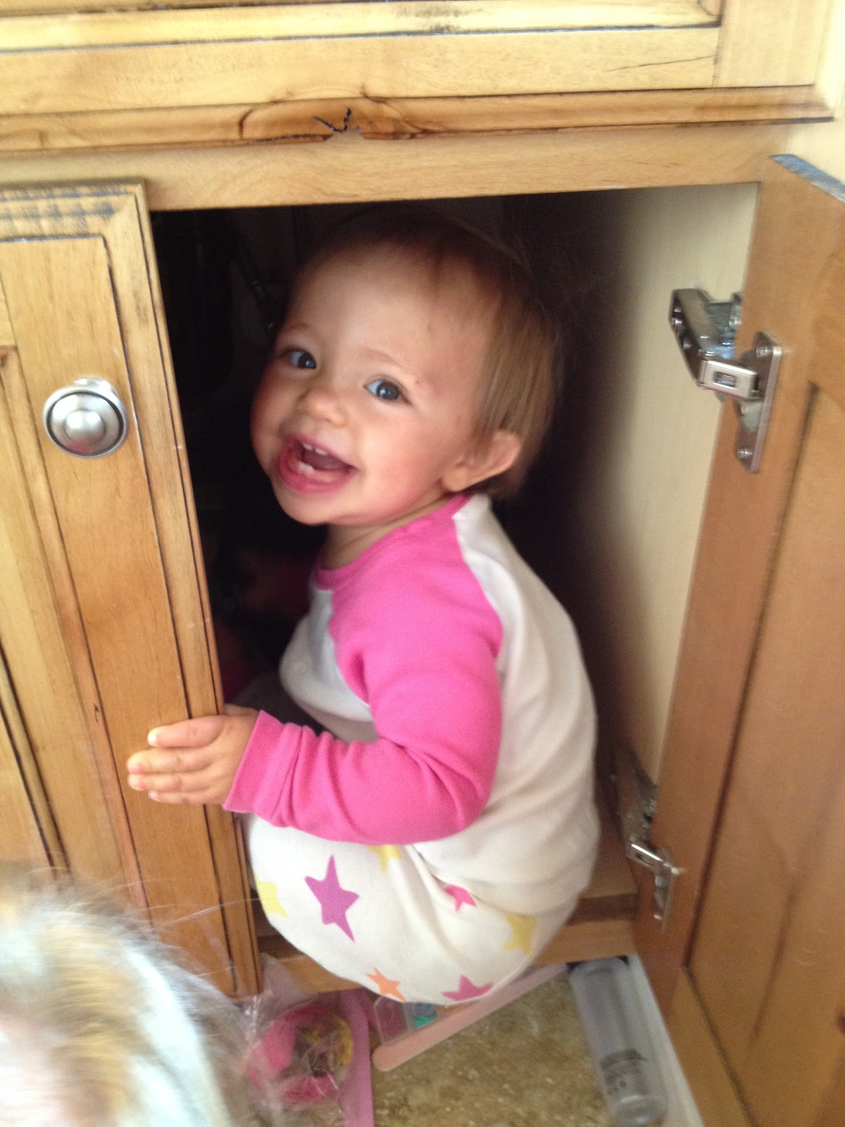 Kinley found the cupboards and realized it's fun to go explore and hide.
